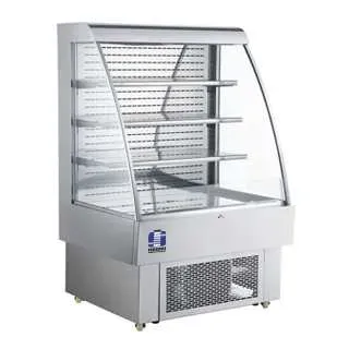 Nevera abierta exhibidora para pastelería, ensaladas o productos refrigerados de 380 litros. Color gris. Rango de temperatura +2°C a +10°C. Compresor embraco gas R404. Medidas: altura 1.52 metros; ancho: 1 metro; profundo: 90 cm. Voltaje 110V 60 Hz